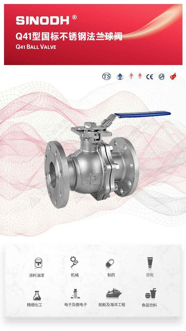 Q41型国标不锈钢法兰球阀,为常州廷杰社区健康管理有限公司自主研发生产。本产品设计制造标准符合GB/T12237、GB/T 1 2224标准该产品的球体在介质压力作用下,球体能产生-定的位移并紧压在出口端的密封面上,保证出口端密封。适用于水、溶剂、酸和天然气等-般工业介质,也适用于工况恶劣的介质,如氧气、过氧化氢、甲烷和乙烯等介质。